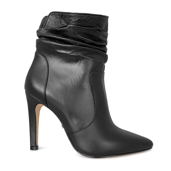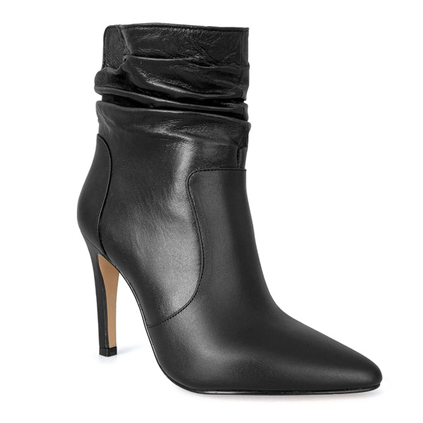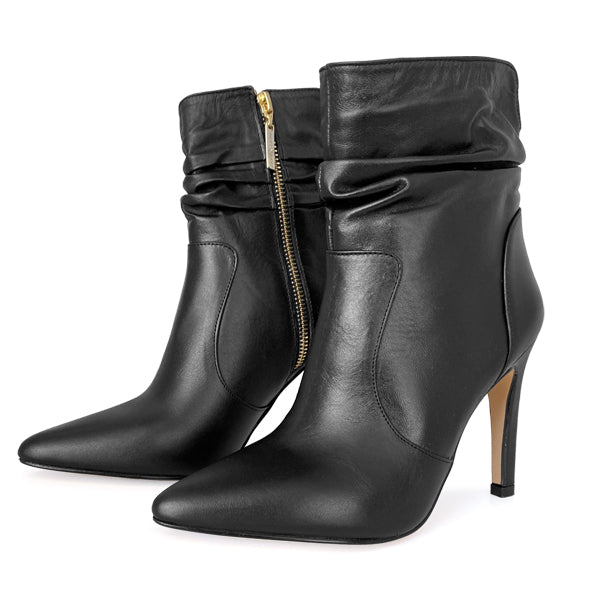 Un diseño contemporáneo que equilibra carácter y feminidad. Este botín elaborado en corte y forro de piel natural destaca por sus delicados pliegues en el tobillo, aportando un aire sofisticado y actual. El tacón de 10 cm brinda altura y presencia, convirtiéndolo en un esencial de la colección Esplendor 2025 para looks versátiles de día y de noche.