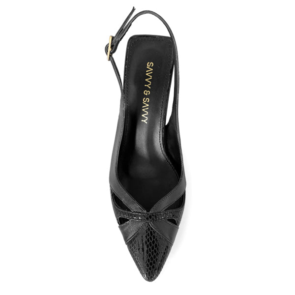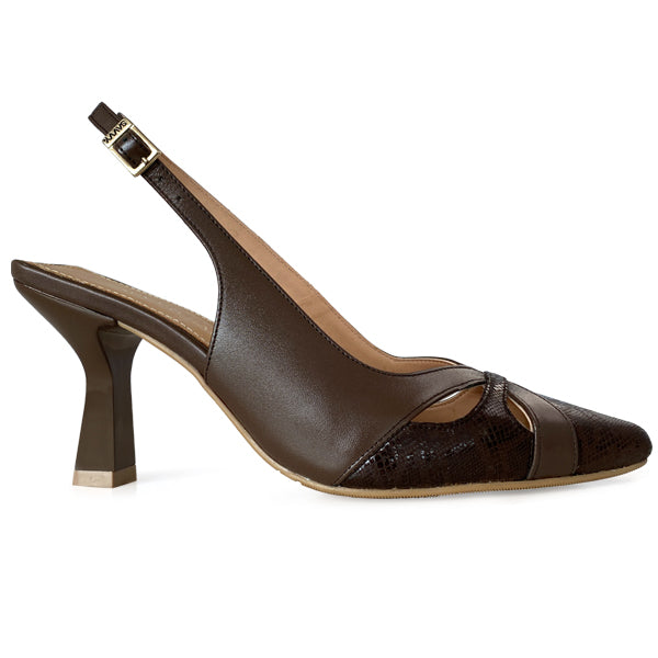 El modelo Clara de Savvy & Savvy redefine la elegancia clásica con un toque contemporáneo. Su diseño en piel genuina negra y café aporta sofisticación, mientras que el tacón de 7 cm ofrece la altura ideal para lucir estilizada sin sacrificar comodidad.