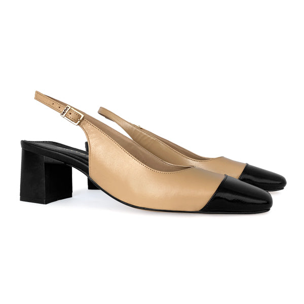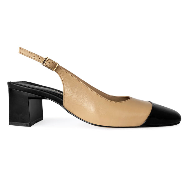 Un clásico reinventado para acompañarte todos los días. Este slingback bicolor combina un diseño atemporal con la suavidad y resistencia del corte y forro 100% de piel, ofreciendo una sensación de confort desde el primer paso.