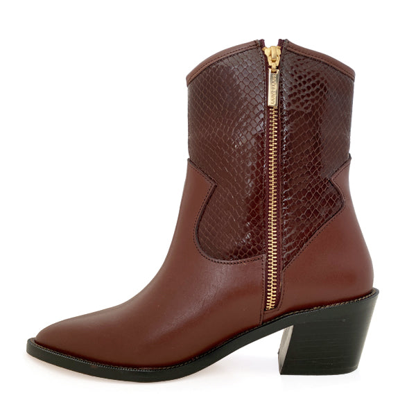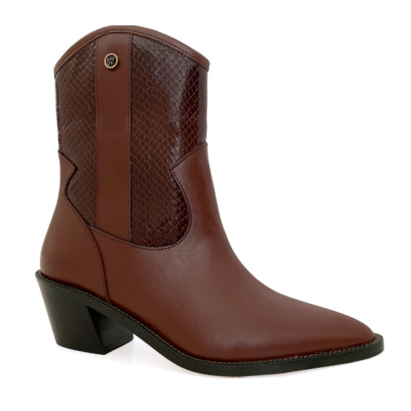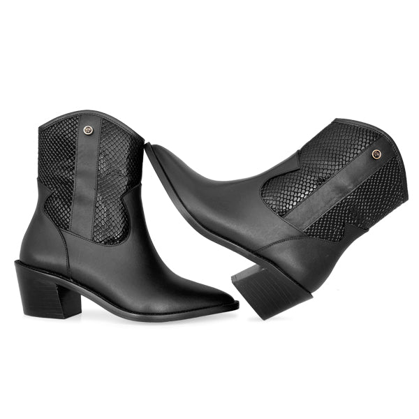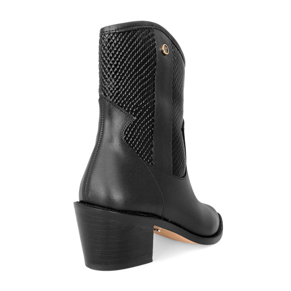 Su tacón de 5 cm ofrece soporte y comodidad ideal para usar durante todo el día, sin renunciar a una silueta estilizada y femenina. El diseño tipo western fusiona tendencia y versatilidad, lo que la convierte en una pieza clave para elevar cualquier look.