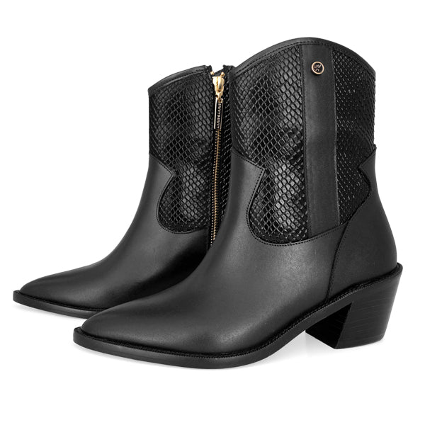 La bota Jackie Reptil es una versión más atrevida y contemporánea de nuestra línea Jackie, creada para mujeres que buscan estilo con carácter. Fabricada en piel genuina, combina un cuerpo liso con paneles en textura reptil que aportan un contraste elegante y sofisticado.